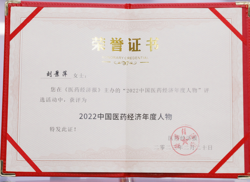 sunbet申搏药业集团董事长刘景萍当选“2022中国医药经济年度人物”