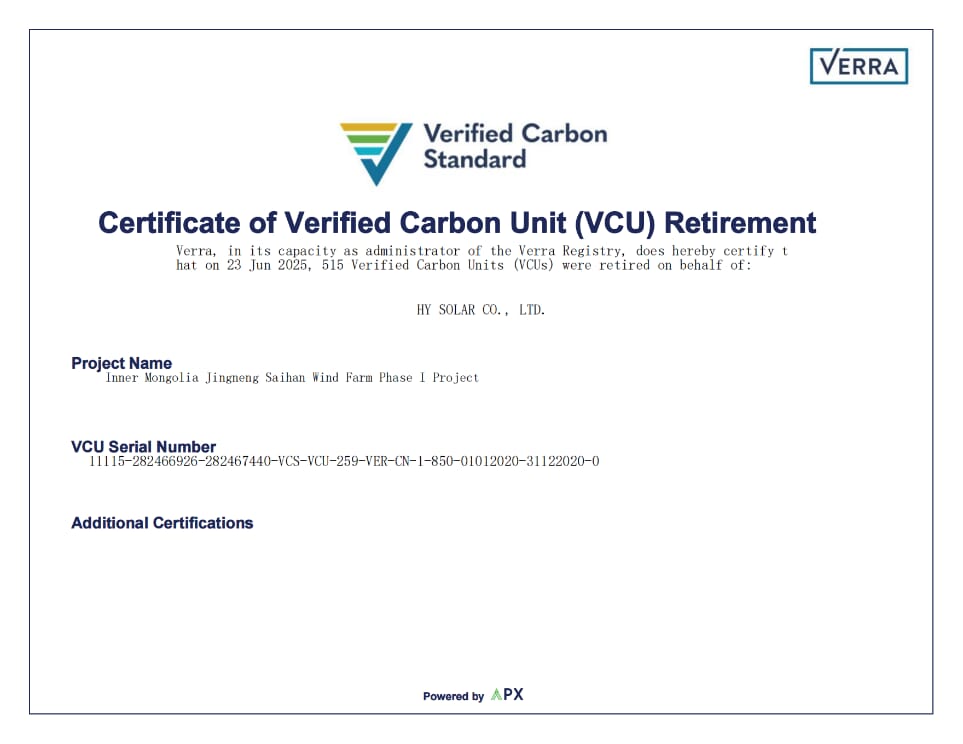 近日,G22恒峰绿能顺利完成2024年度《温室气体核查陈述》,并完成《国际可再生能源证书(I-REC)》与《温室气体排放碳抵消(VCU)》的采购与注销登记,正式取得对应证书,连续第二年实现绿色“三项”齐全。这一成果标志着公司在碳排放管理、绿色用能与碳中和路径建设方面持续推进,为绿色制造体系的深化与可持续发展战略的落地提供了有力支撑。